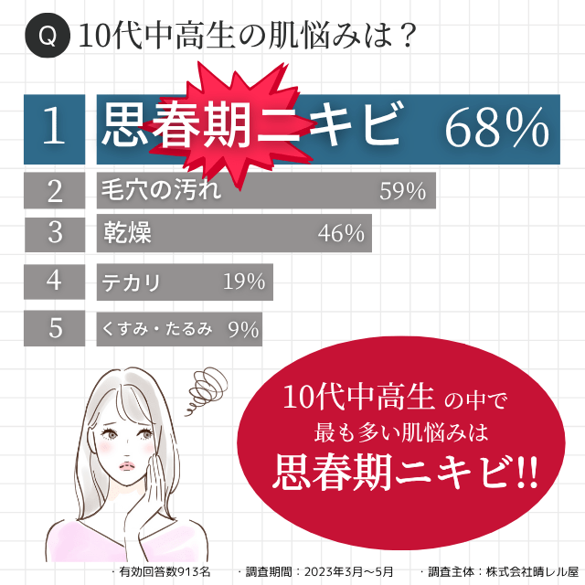 10代の中高生の肌悩みNo.1は、思春期特有のニキビ。