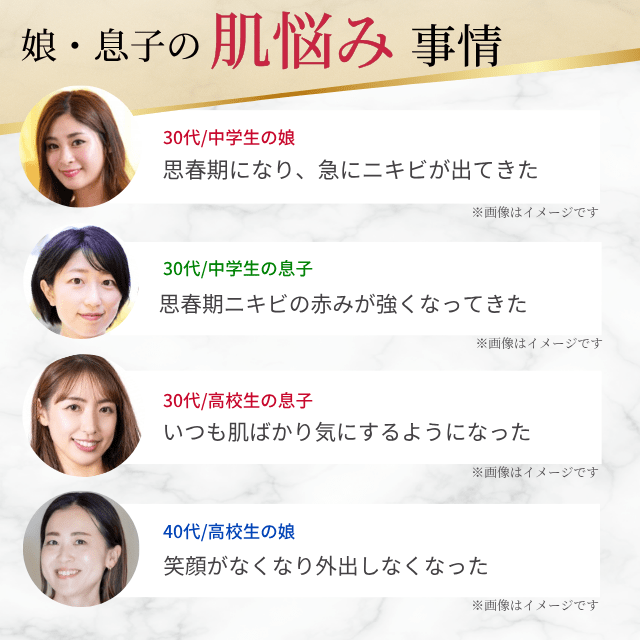 - A はい、公式サイトにも記載されている通り、思春期ニキビのケアにもおススメできる商品です。
